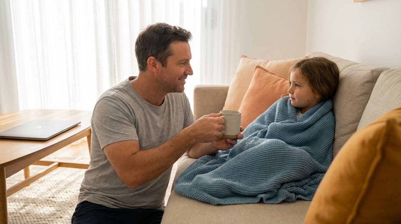 - Agree a “sick day plan” with your household. Talk with your partner or co‑parent about who does what when the next “Mum, I feel sick” moment hits – especially during holidays.