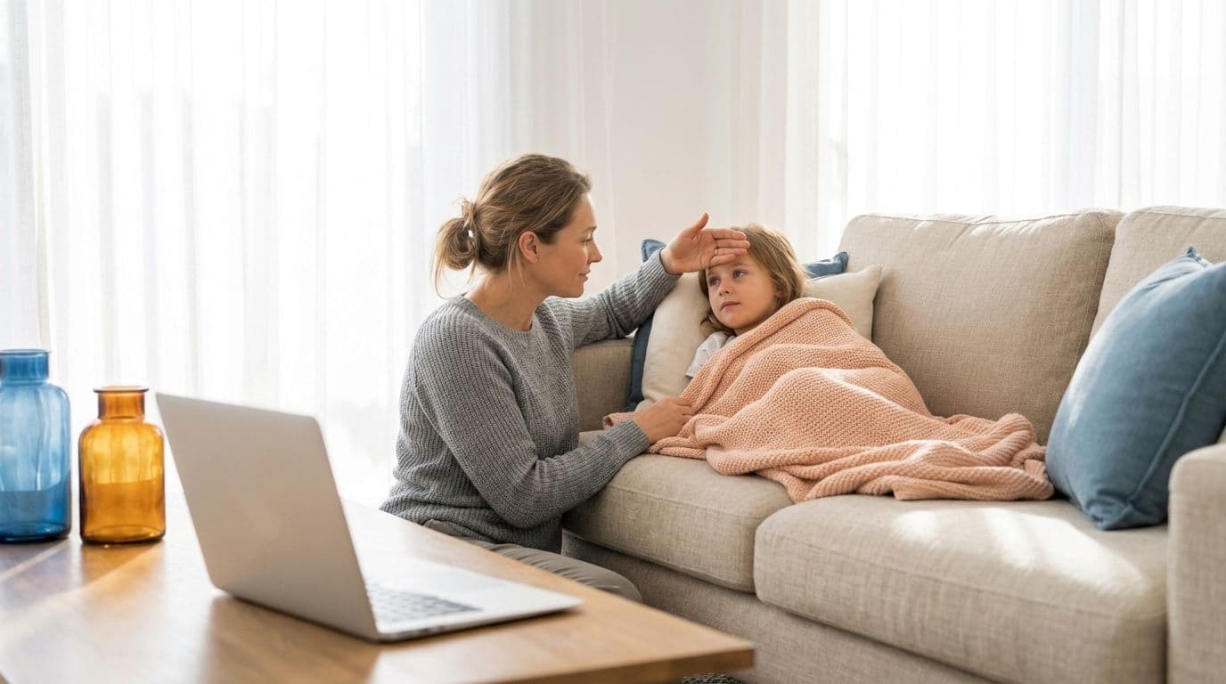 If they’re mildly unwell and you mainly need rest, fluids and monitoring at home, a telehealth consult may be enough for guidance – and, where appropriate, for a medical certificate for a sick child to support your leave.