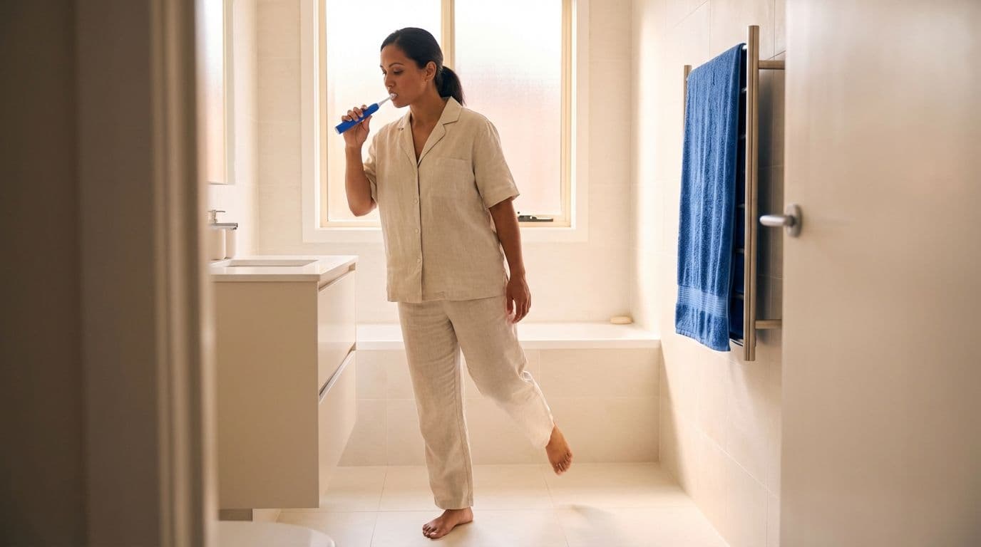 - Start a simple daily balance routine (for example, standing on one leg while brushing your teeth) once it’s safe – and stick with it.
